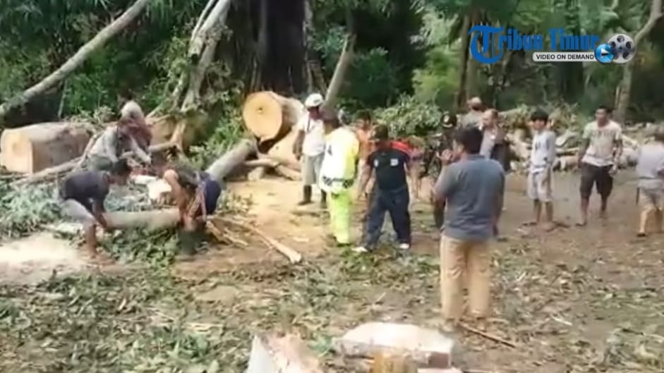 TNI Warga Desa Harapan Selayar Gotong royong Bersihkan Pohon Tumbang